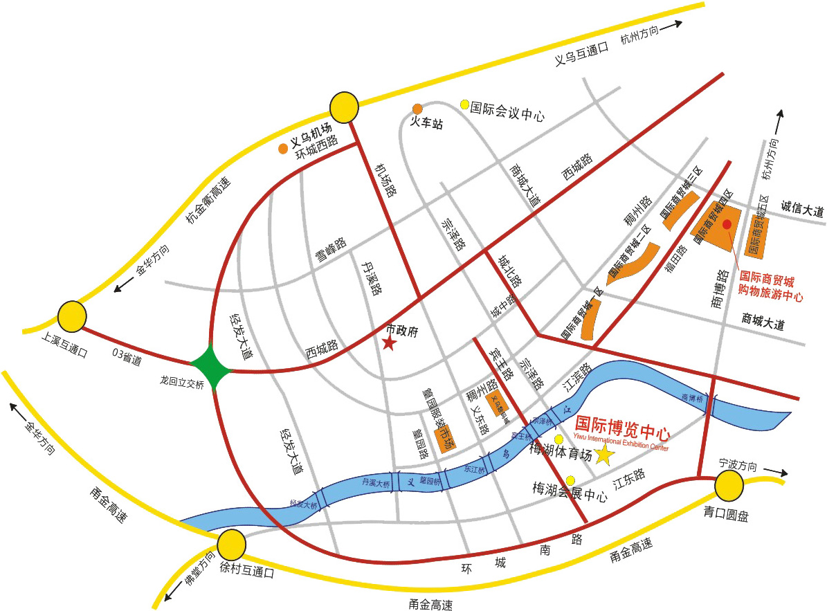 9).自駕車溫州方向:諸永高速(S26)-甬金高速(G1512)-義烏青口-310省道-江東東路-國際博覽中心