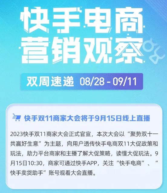 媒體報(bào)道快手雙11商家大會(huì)將于9月15日啟動(dòng)線上直播