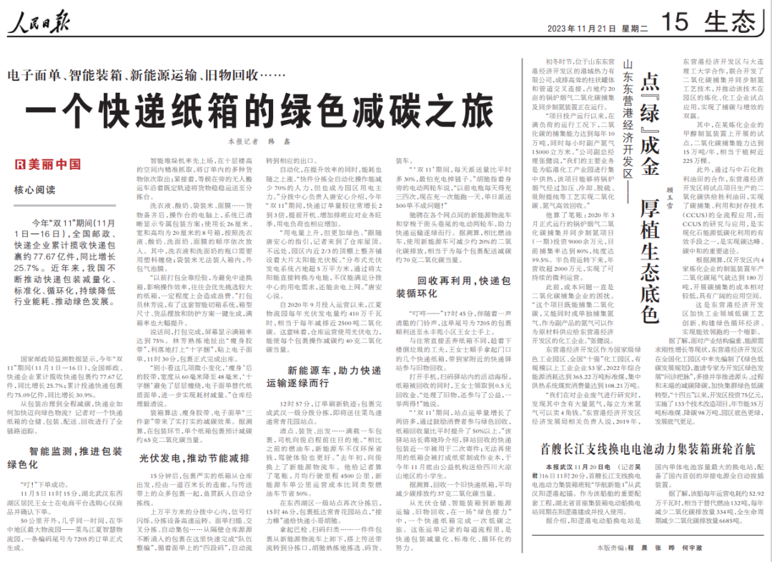 媒體報(bào)道人民日?qǐng)?bào):一個(gè)快遞紙箱的綠色減碳之旅