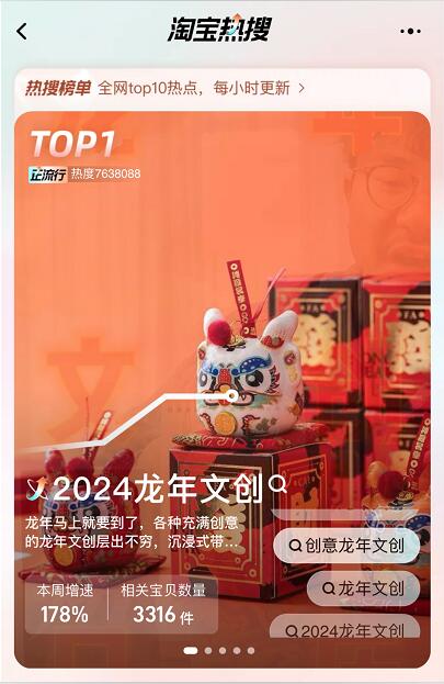 (圖:“2024龍年文創(chuàng)”登頂淘寶熱搜第一)