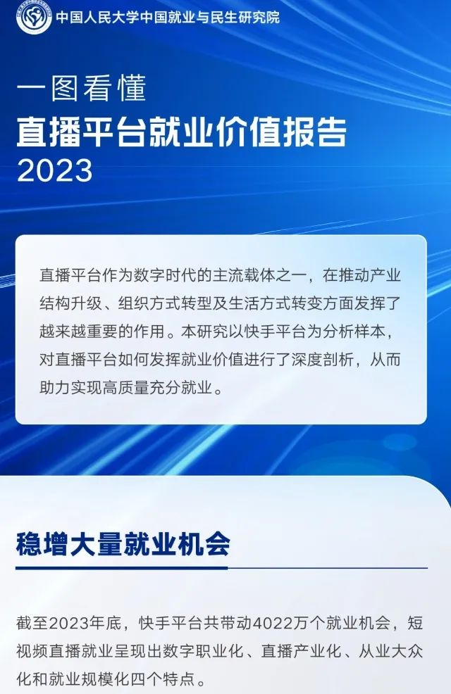 大學《2023直播平臺就業價值報告》 圖源:快手科技公眾號