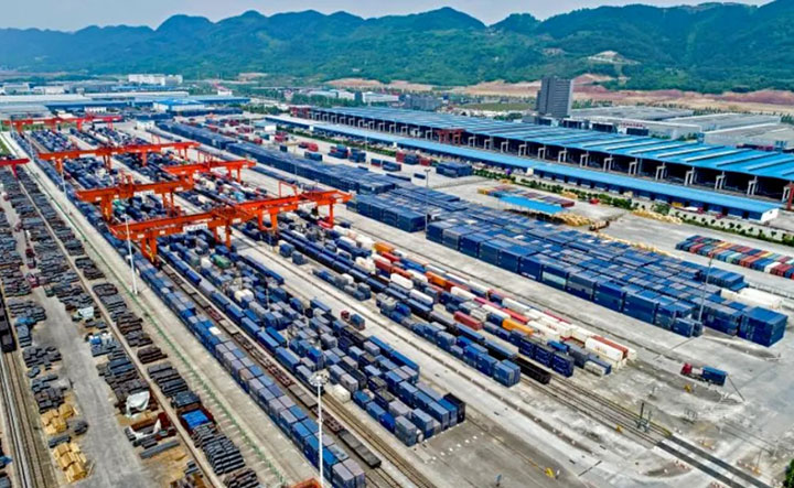 重慶兩江新區(qū)果園港鐵路專用線現(xiàn)場(chǎng),一列滿載通用機(jī)械、化工產(chǎn)品等貨物的鐵海聯(lián)運(yùn)班列拉響汽笛,緩緩駛出,兩天后經(jīng)廣西欽州港運(yùn)至東盟地區(qū)。