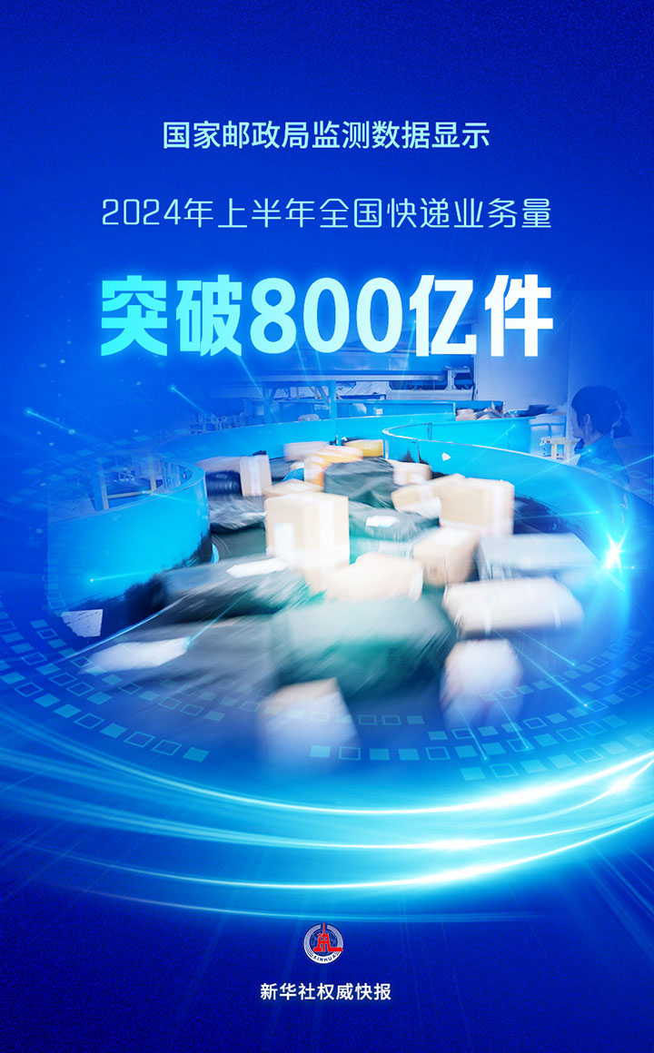 國家郵政局監測數據顯示,截至6月30日,今年上半年我國快遞業務量突破800億件,比2023年提前59天。