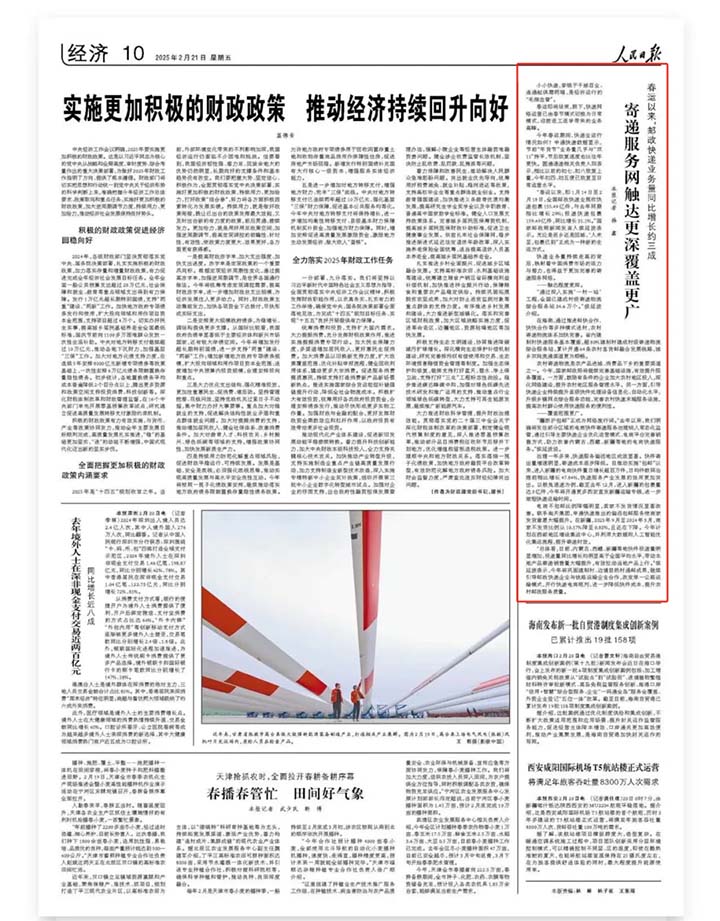 媒體報(bào)道人民日?qǐng)?bào):寄遞服務(wù)網(wǎng)觸達(dá)更深覆蓋更廣