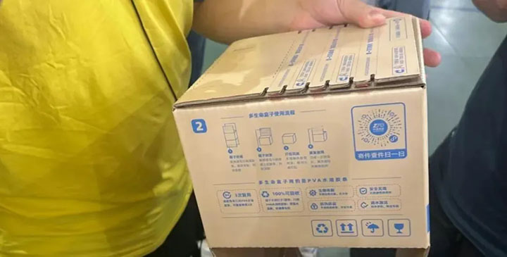 《條例》正式施行在即,中通云倉正在嘗試使用一款名叫“多生命盒子”的環(huán)保紙箱,100%可回收,同時(shí),紙箱帶有3對PVA水溶膠條,不需要用膠帶,水溶即可粘貼,可循環(huán)使用三次,“適用于逆向物流場景,方便顧客退換貨。”中通云倉市場品牌部負(fù)責(zé)人徐永貴介紹道。