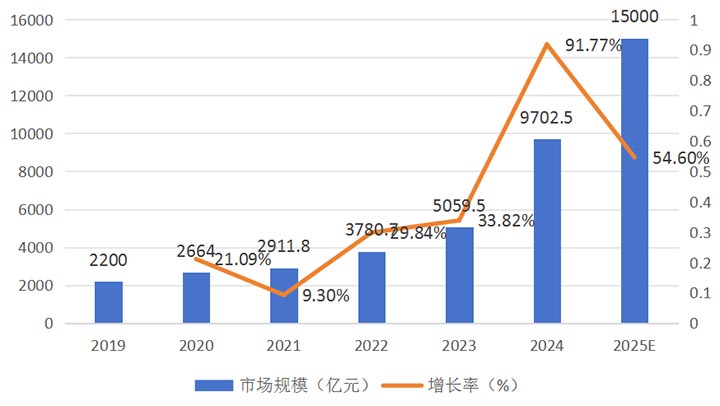 其次,作為我國(guó)戰(zhàn)略性新興產(chǎn)業(yè),低空經(jīng)濟(jì)有望成為促進(jìn)經(jīng)濟(jì)發(fā)展的新增長(zhǎng)點(diǎn)。據(jù)中國(guó)民航局、中商產(chǎn)業(yè)研究院數(shù)據(jù)顯示,2024年低空經(jīng)濟(jì)的市場(chǎng)規(guī)模達(dá)到9702億元,預(yù)計(jì)到2025年市場(chǎng)規(guī)模將達(dá)到15,000億元。其中,無(wú)人機(jī)配送作為低空經(jīng)濟(jì)重要的應(yīng)用場(chǎng)景,市場(chǎng)空間廣闊。