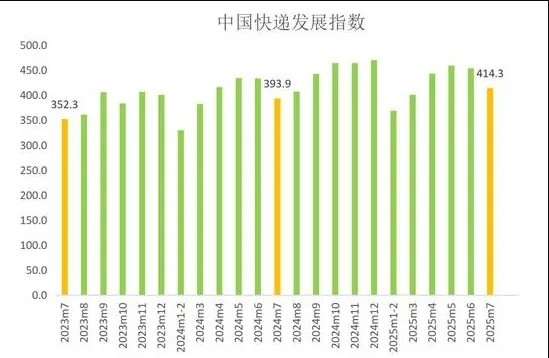 圖1 2023年7月-2025年7月中國快遞發展指數