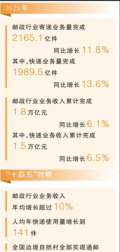 這只是中國物流新速度的一個切面。新速度背后是一張世界上規模最大、受益人數最多的寄遞網絡:2025年,中國快遞業務量近2000億件,同比增長13.6%,連續12年位居世界第一。“十四五”時期,農村和邊境地區郵政通達廣度深度明顯提升,營業網點數量較5年前增長近1.5倍,全國邊境自然村全部實現通郵。