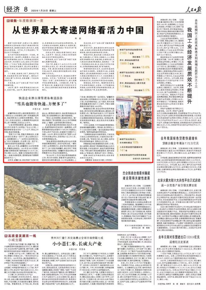 媒體報道人民日報:從世界最大寄遞網絡看活力中國(讀數·年度數據深一度)