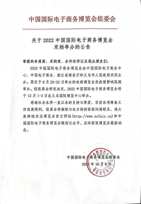 重要通知:2020中國國際電子商務博覽會暨數字貿易博覽會延期舉辦公告